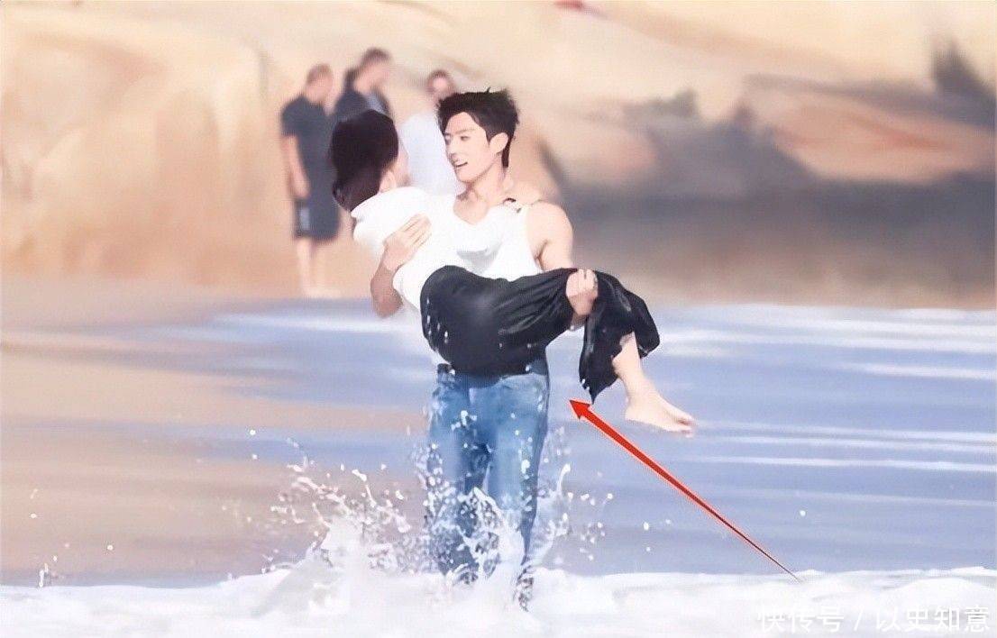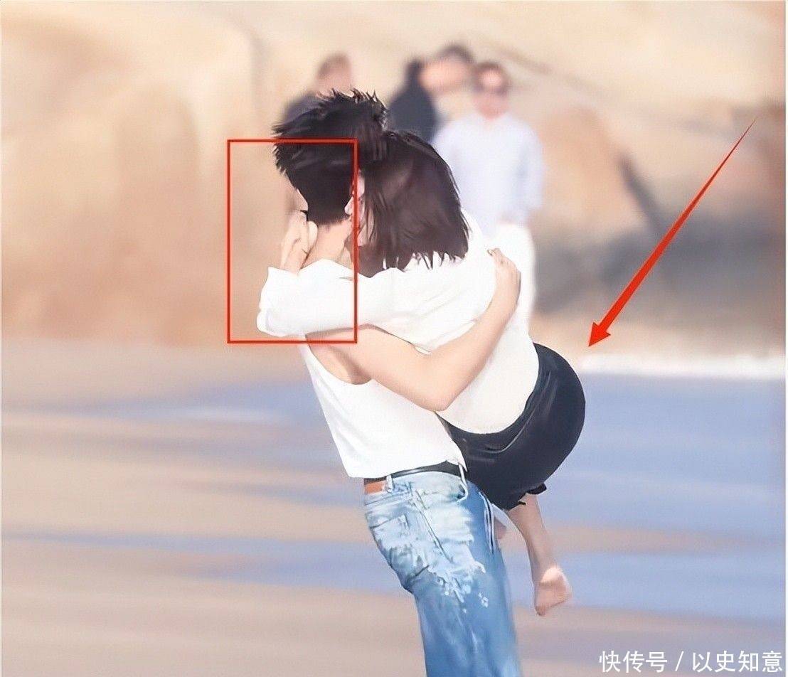 从侧面观察,两人拥抱的姿态略显尴尬,贾静雯的身体明显下滑,几乎要滑出怀抱,难道是男方力气不足?